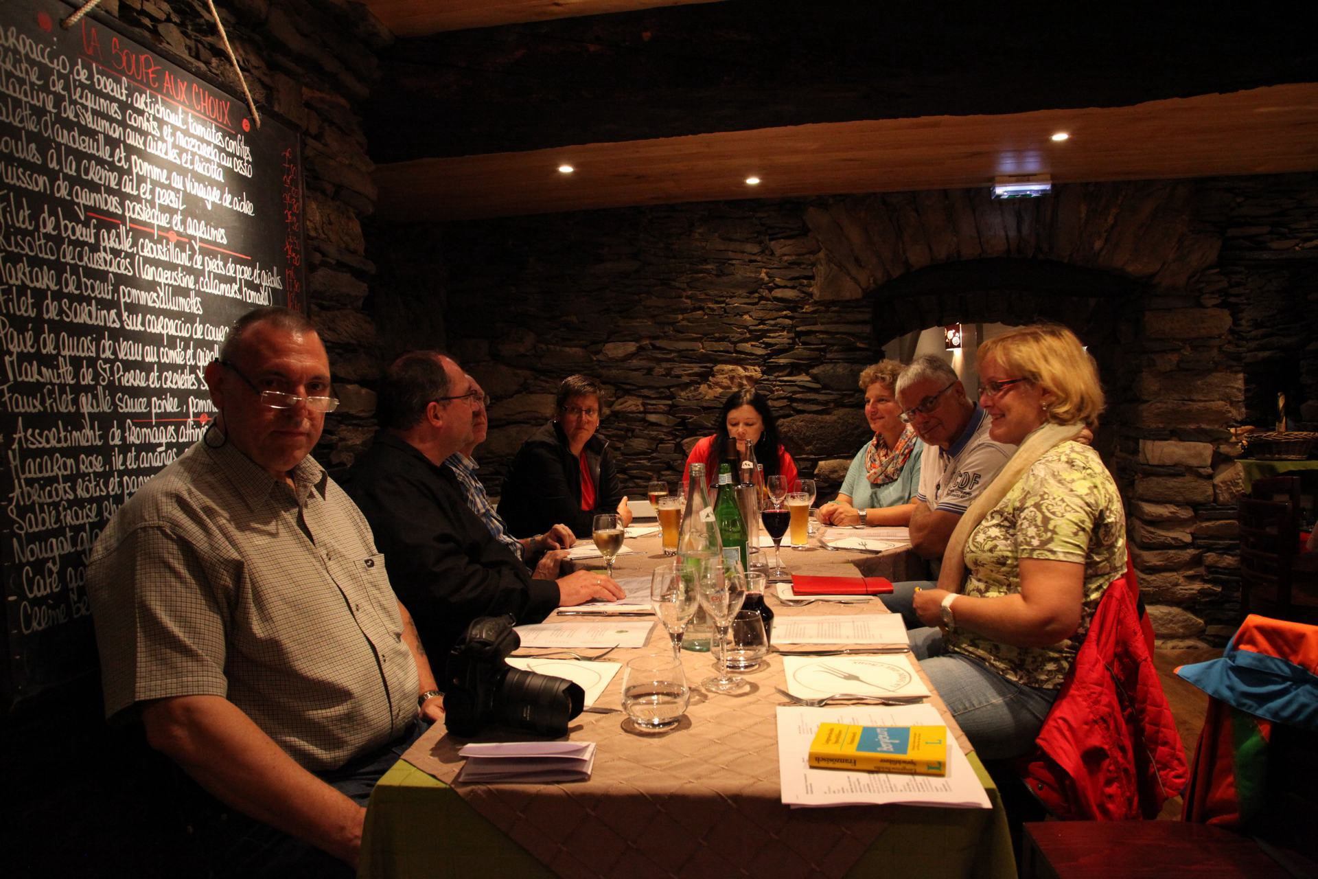 Die bretonische Gaststätte "La Soupe aux choux" in Vitré. Sehr urig und gemütlich. Neu für uns! In Frankreich bezahlt man nicht getrennt. Also schaut jeder was er bezahlen muss und legt sein Geld zuzüglich Trinkgeld auf die Rechnung.