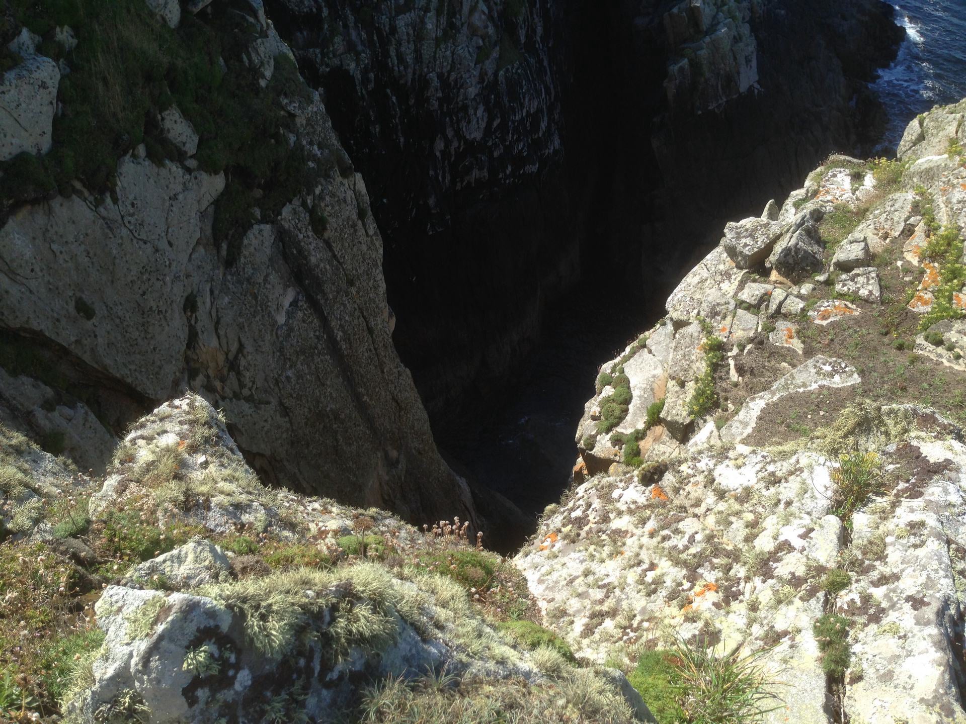 Dort hinzukommen war beinahe hochalpine Kletterei und nicht ungefährlich. Der Weg war gerade einen Fuß breit und die Felsen führten rund 150 Meter in die Tiefe.